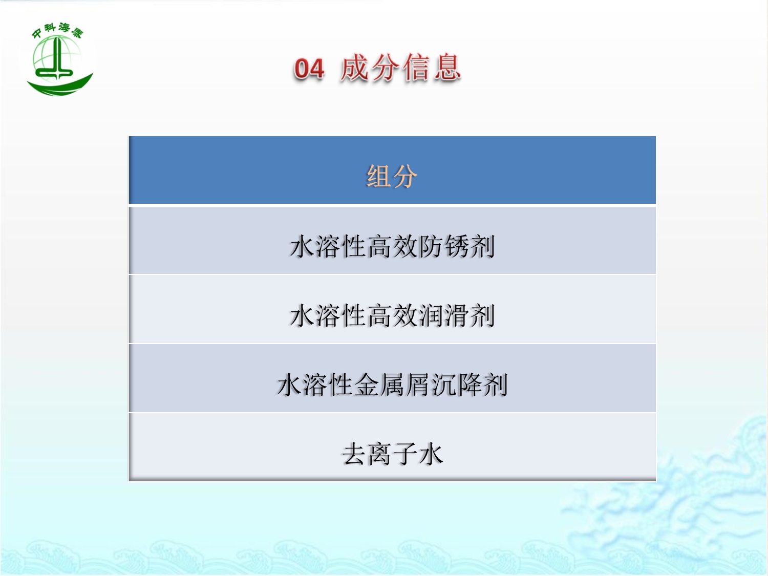 含高效防锈剂,不含亚硝酸盐,对黑色金属具有良好的防锈作用。由于其优异的防锈性能,客户加工现场可用作防锈液,对工件进行短期防锈处理。